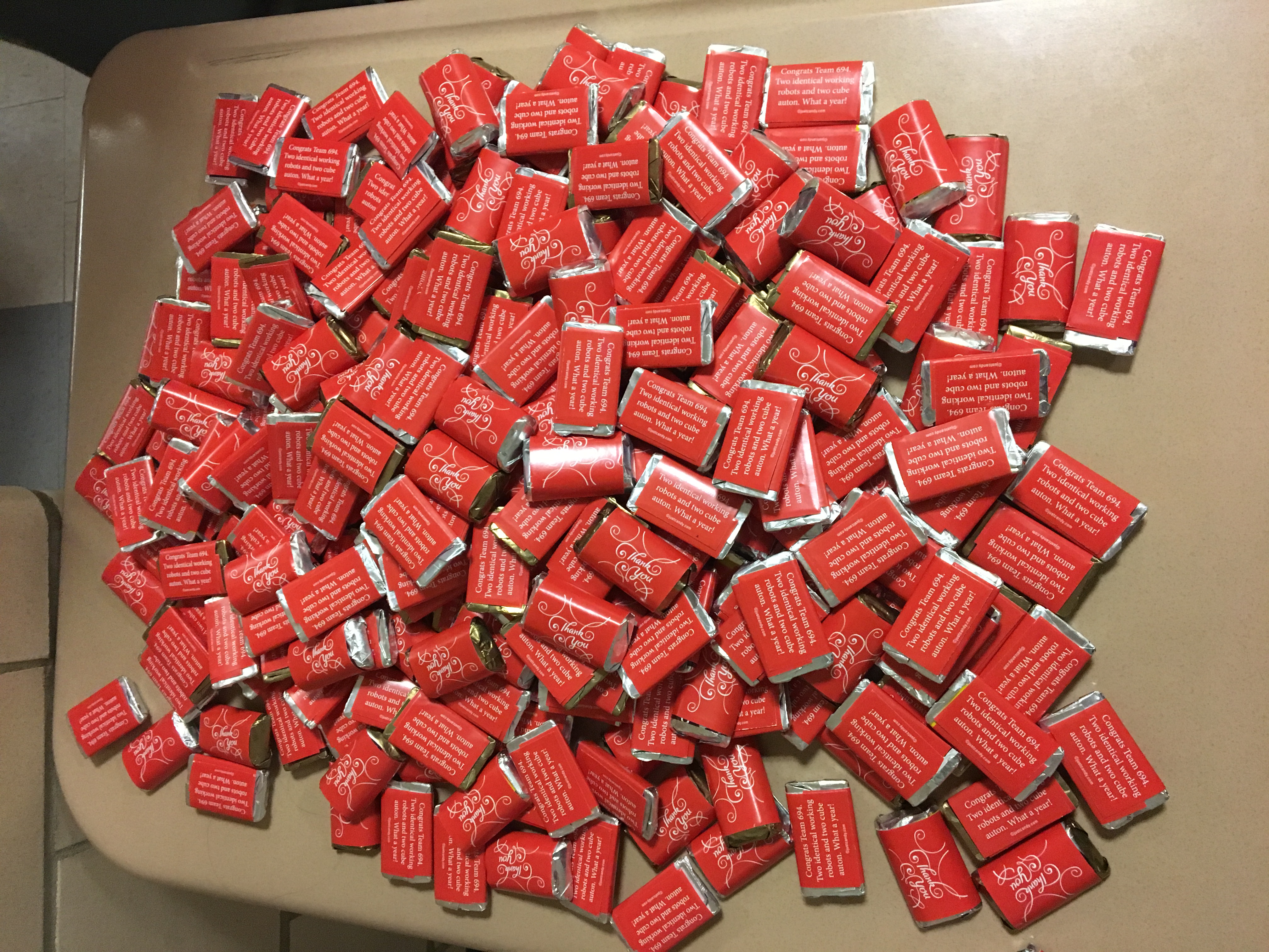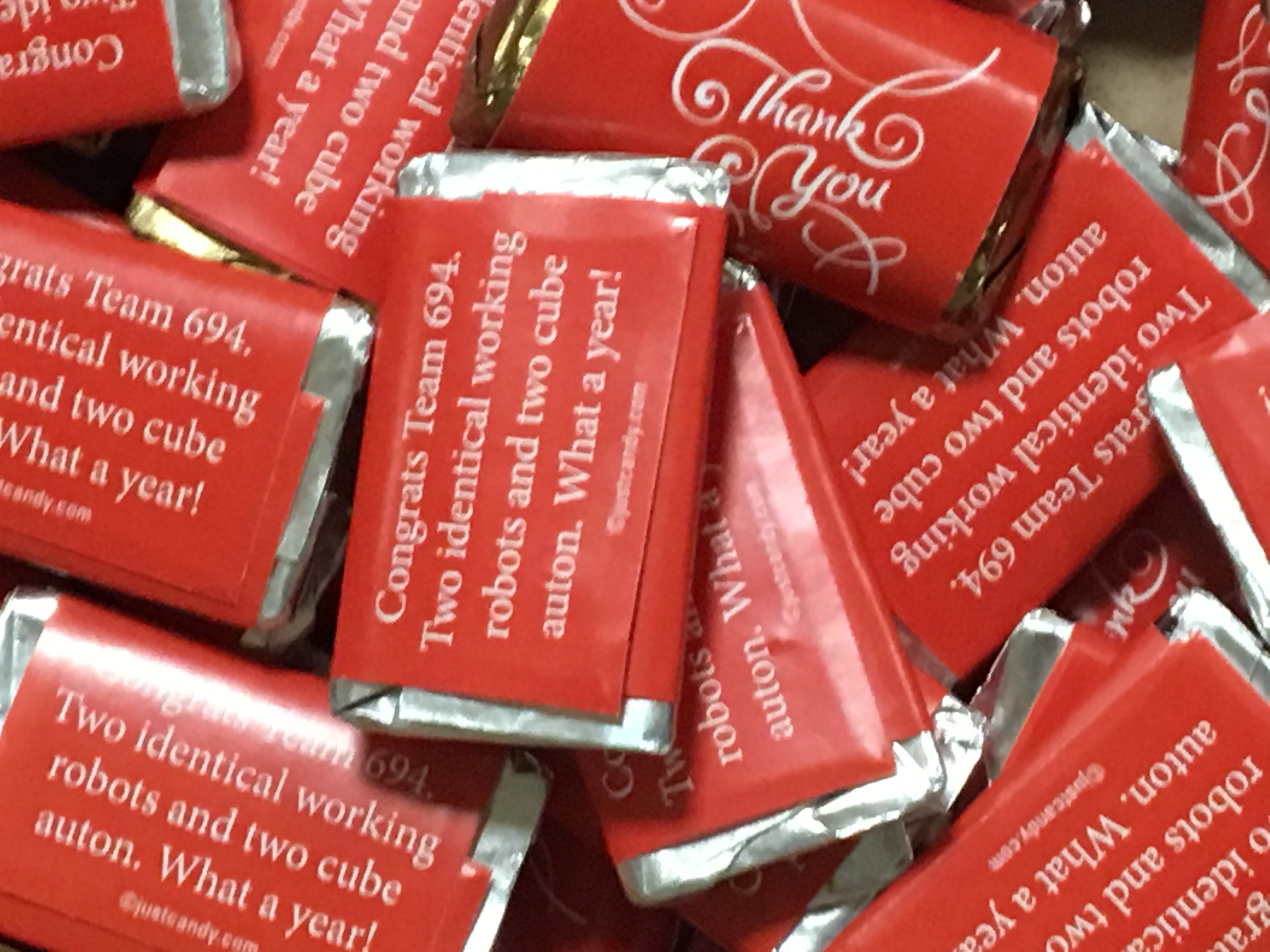 On to the prize. This was better than the CV year so I wanted to bring in something nicer. It needed to portable and have a low cost per unit (I needed a few hundred.) And ideally it would be wrapped. I decided on 30 mini chocolates each saying: